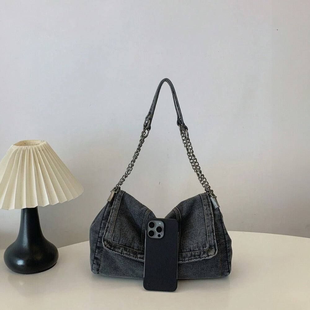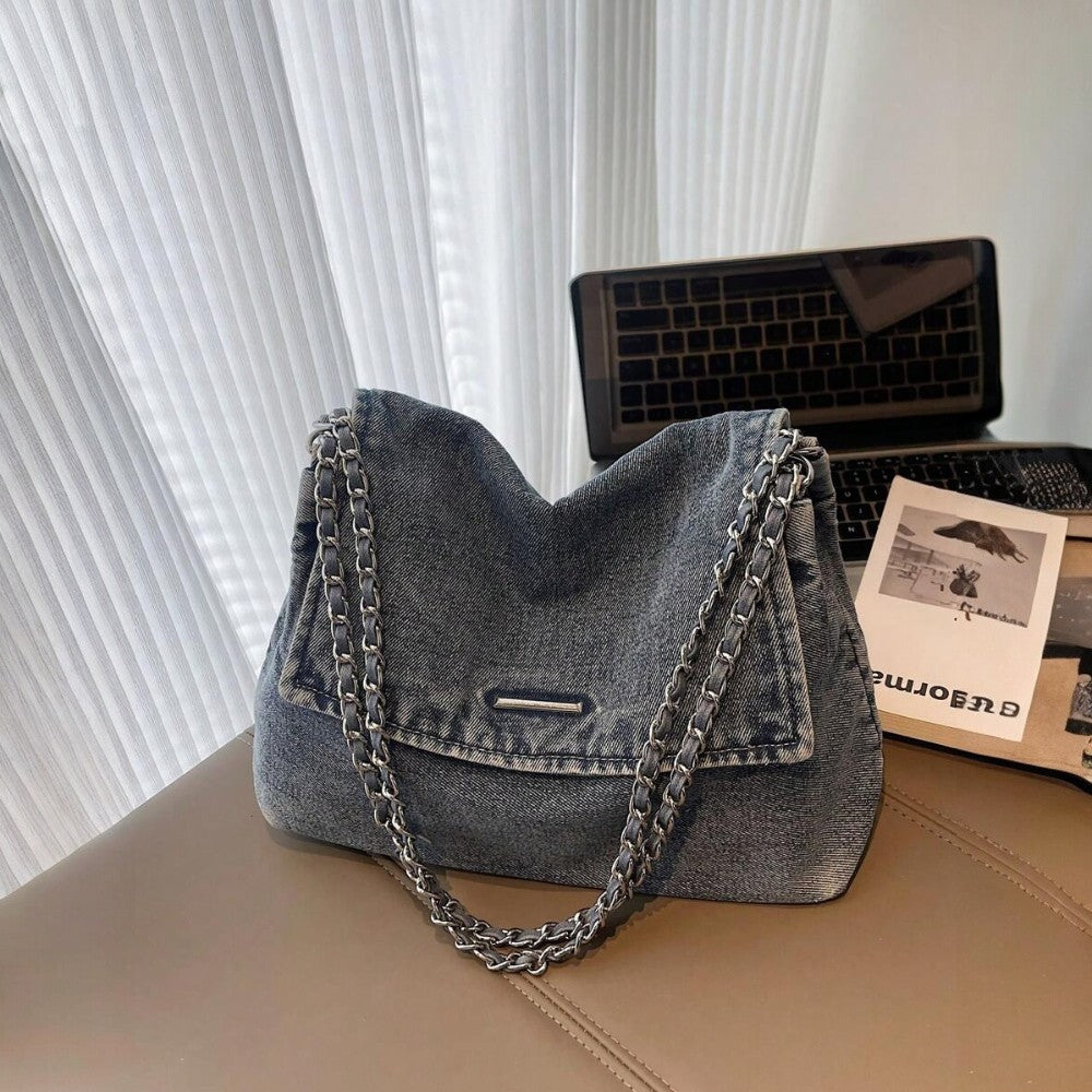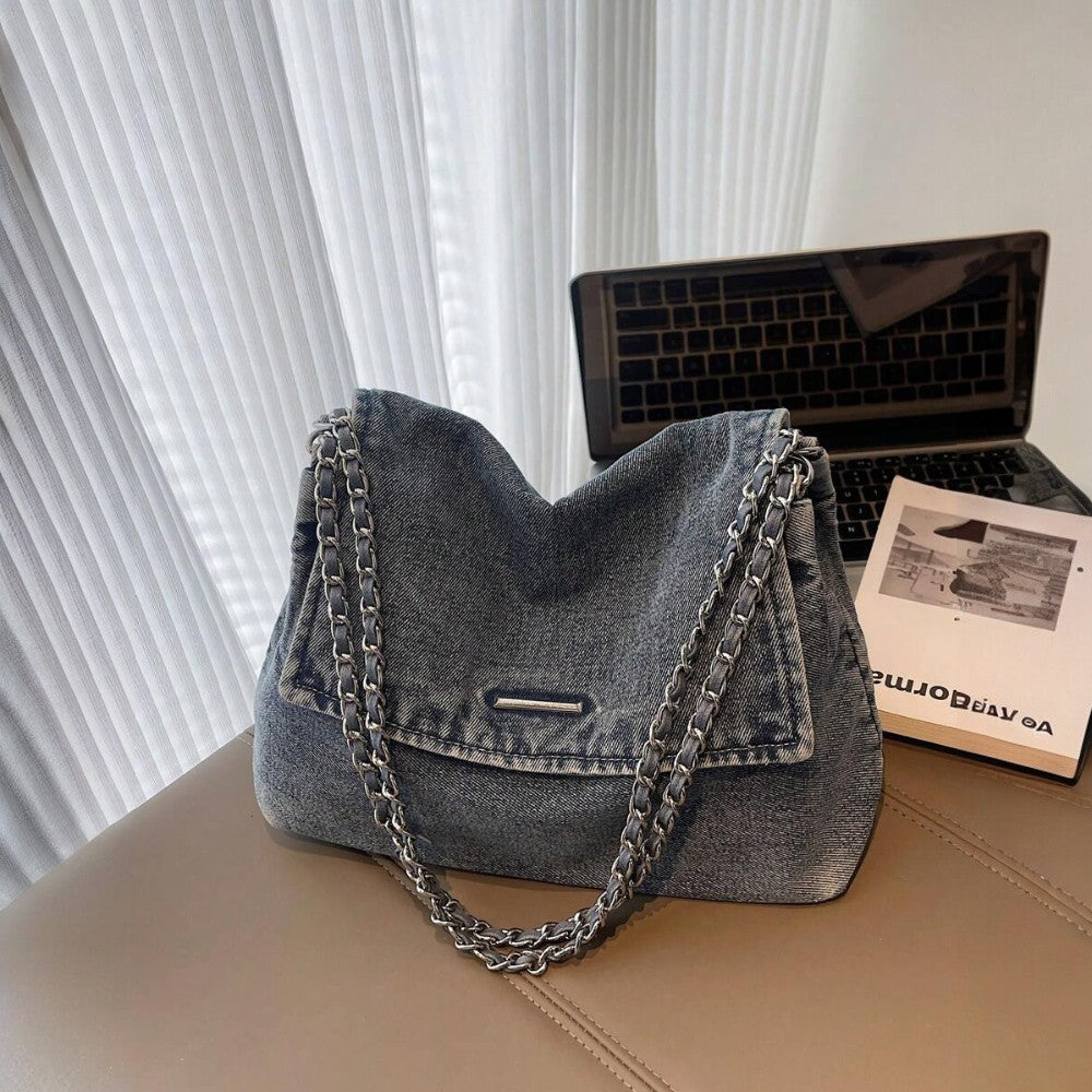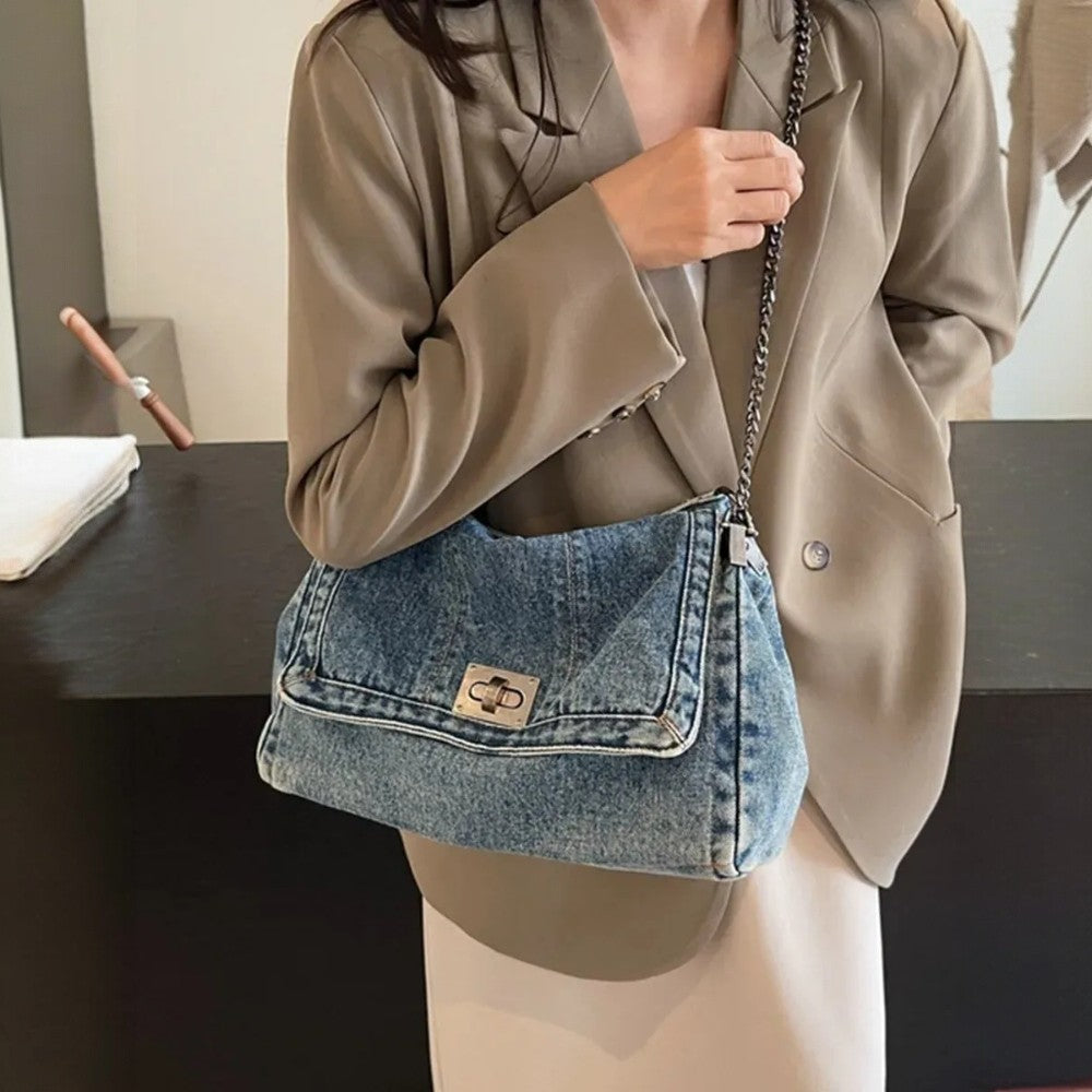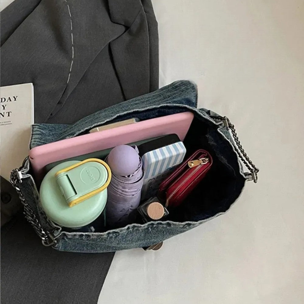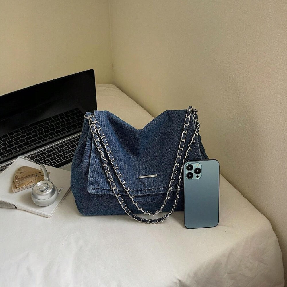 حقيبة Grace الخاصة بنا مصنوعة من الدنيم عالي الجودة، تجمع بين الأسلوب الكاجوال والمتانة. مصممة لتكون واسعة بما يكفي، تستوعب بسهولة أساسياتك: الكمبيوتر المحمول، مستحضرات التجميل والإكسسوارات اليومية.